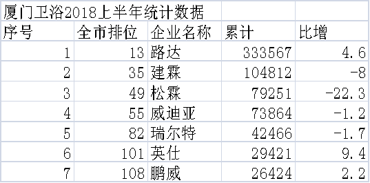 数据显示,列入2018年上半年厦门市150家重点工业企业名录的7家卫浴企业,其中只有3家正增长,其余4家负增长,两者相抵,还是实现负增长17%,整体不容乐观。