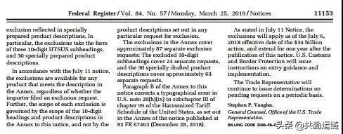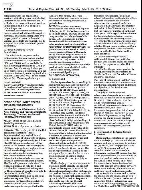3月25日,美国贸易代表办公室(USTR)发布最新公告,批准了美国对华301征税340亿美元清单中数十项商品的排除申请。