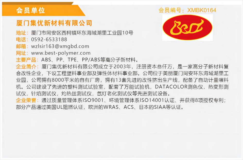 厦门集优新材料有限公司成立于2003年,注册资本叁仟万,是一家高分子新材料复合改性企业,下设工程塑料事业部及弹性体材料事业部。公司位于美丽厦门同安环东海域湖里工业园,公司拥有8000平米的自有厂房,拥有13套先进的改性挤出生产线,配备了自动计量喂料机。公司建设了先进的塑料测试试验室,配套了万能试验机,DATACOLOR测色仪,热变形测试仪,针焰测试仪,灼热丝测试仪,氙灯老化测试仪等先进测试设备。