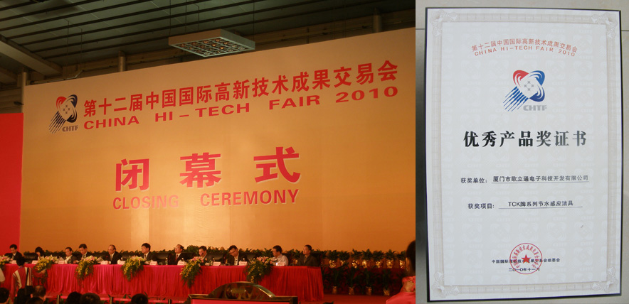 做为厦门组团成员之一的厦门市欧立通电子科技开发有限公司,是厦门市政府选送的厦门市高新技术企业,其主打产品:TCK牌系列节水感应洁具在百万产品中脱颖而出荣获本届高交会优秀产品奖,这正是公司多年来在电子节水洁具的科研的结果,也是欧立通人在长期以来努力的方向之一。