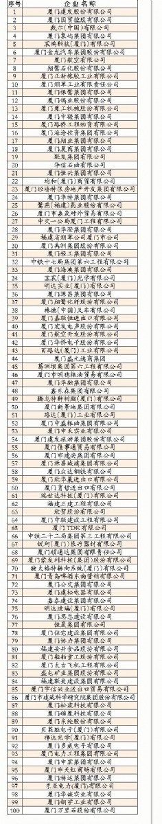 2013厦门100强企业名单