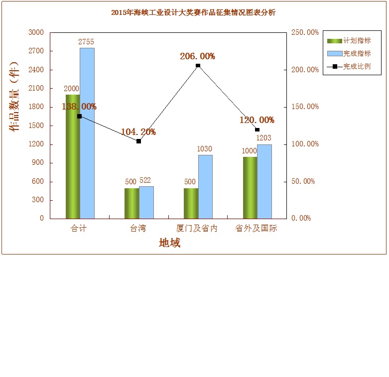 一、本届大奖赛计划征集2000件参赛作品,现征集作品2755件,完成计划总指标的137.8%,超额完成了征集任务。