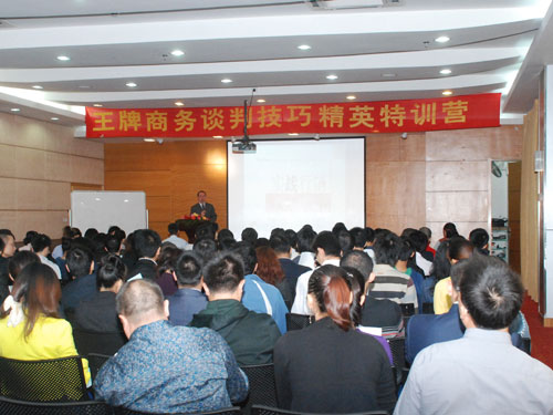 培训在市中小企业服务中心张小铁经理的主持下,于上午9点准时开始,市经发局市场处余永福处长应邀出席培训。受邀担任此次培训讲师的是在业内享有“中国第一品牌教练”美称的中国品牌管理研究中心主席王汉武。王老师将理论与实践结合进行授课,幽默地和学员进行互动,用游戏带领学员们打开心扉,学会和周围的人分享自己所拥有的美好事物。一切看起来似乎平凡又简单,而这恰恰就是王老师要教授给学员们商务谈判的基础要领。在快乐的学习过程中,学员们时而被逗得哈哈大笑,时而听得如痴如醉,时而又让现场掌声雷动。王老师还和学员们约定,在培训过程中,大家要暂时忘记自己的姓名与公务,全身心投入其中,互相学习、切磋,全方位地提高谈判与沟通的技能。