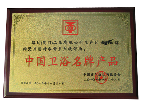 会长单位路达(厦门)工业有限公司生产的“Lota”牌陶瓷片密封水嘴系列被评为“中国卫浴名牌产品”。路达集团总经理许传凯被评为2010年度卫浴五金行业“优秀企业家”。