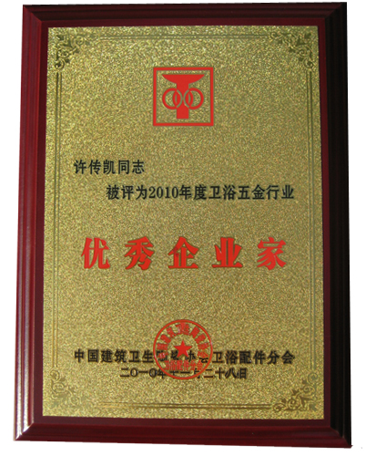 2010年11月28日,中国建筑卫生陶瓷协会卫浴配件分会、淋浴房分会2010年年会在中国水暖之都——南安华彩开幕。大会隆重表彰了2010年度为中国卫浴行业作出杰出贡献的优秀企业家,并颁发《中国卫浴名牌产品》证书及奖牌。