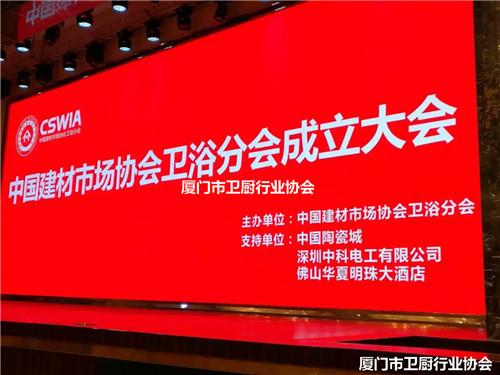 2016年3月24日中国建材界又一盛事。中国建材市场协会卫浴分会在佛山华夏明珠大酒店召开成立大会,宣布正式成立。刘文贵先生任职中国建材市场协会卫浴分会秘书长。厦门市卫厨行业协会秘书长徐海明先生,副秘书长涂小明先生,代表厦门市卫厨行业协会第二届会长会领导到场祝贺,并传达厦门市卫厨行业增进友好合作的愿望,希望可以有机会开展双方合作,向全国建材业好好的展示厦门卫浴业的强大实力。